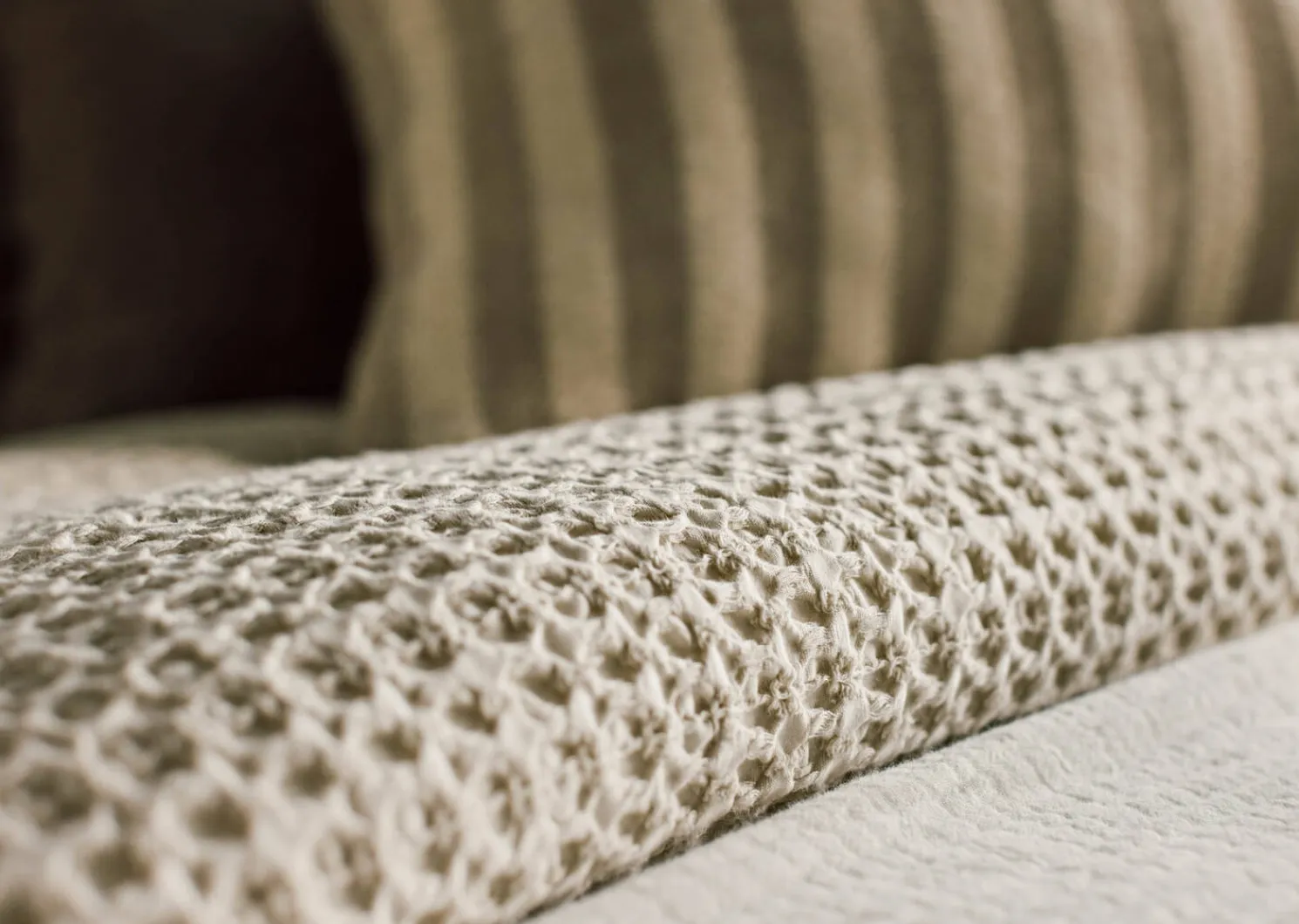 - Yarn dyed cotton with waffle texture in oyster colour
