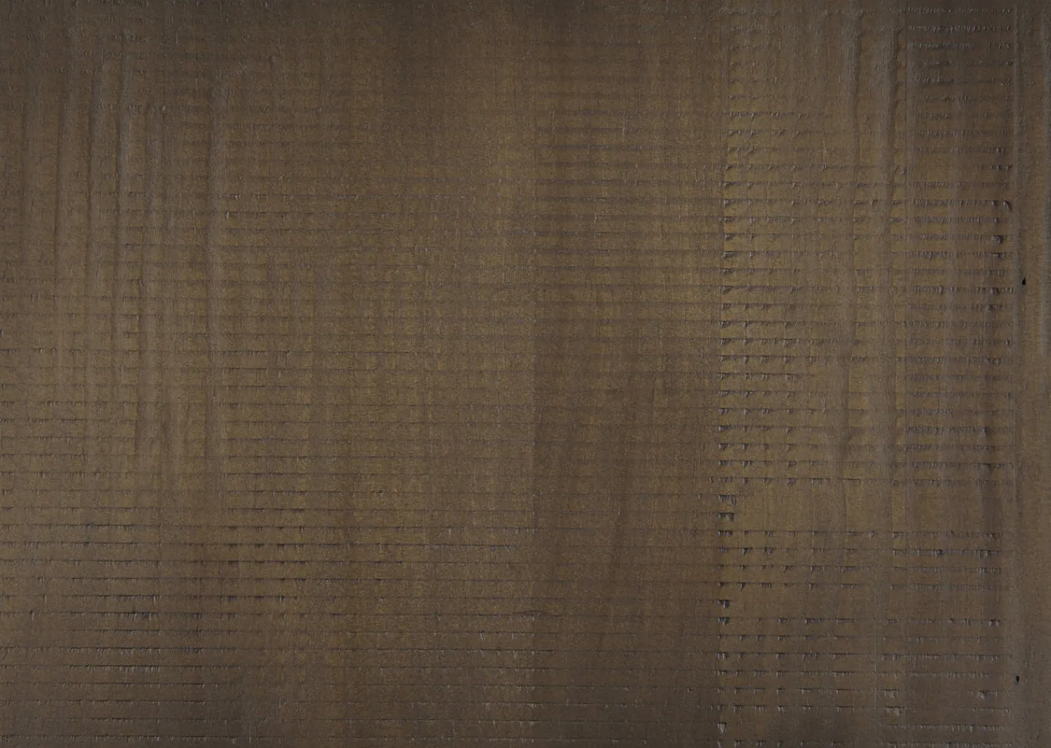 - Reclaimed wood includes signs of wear like nail holes and patches