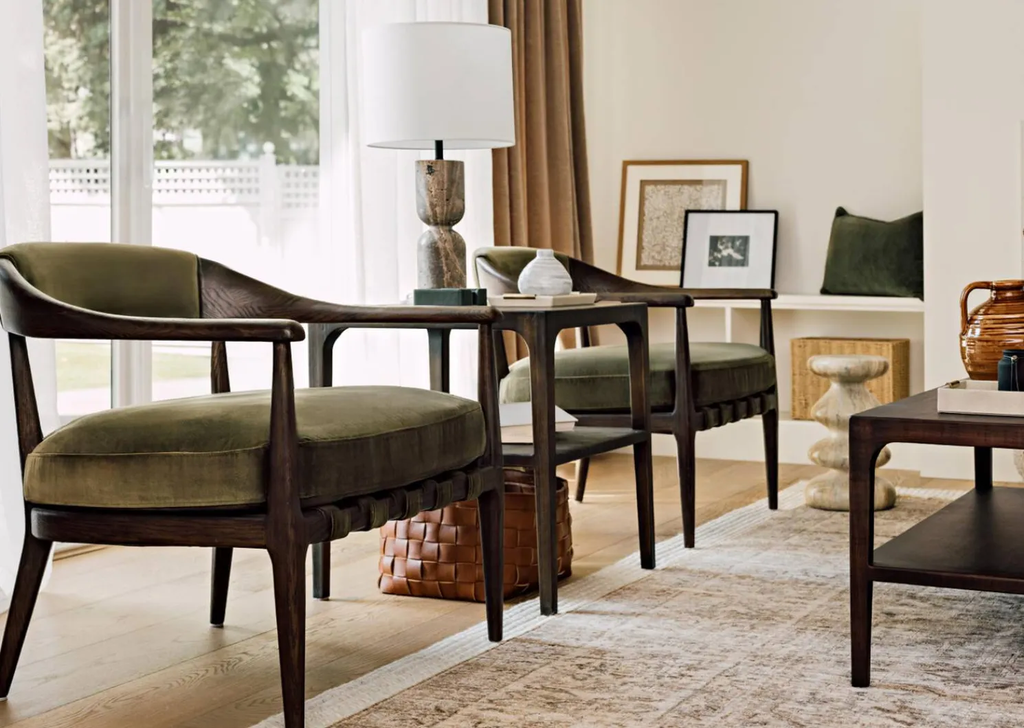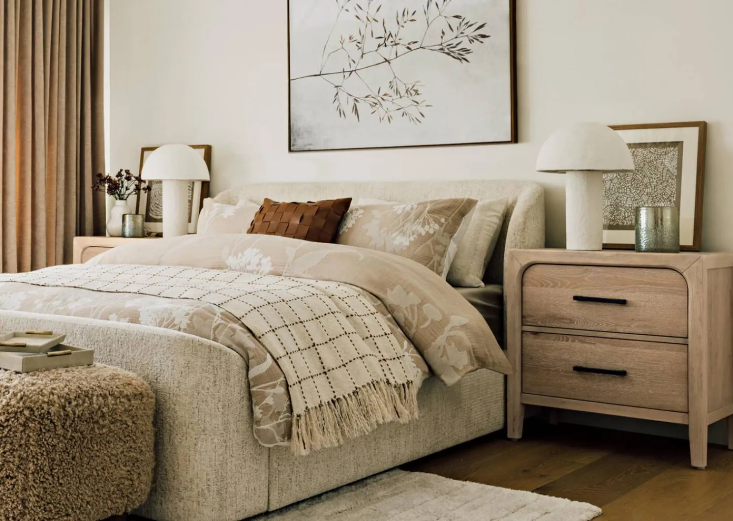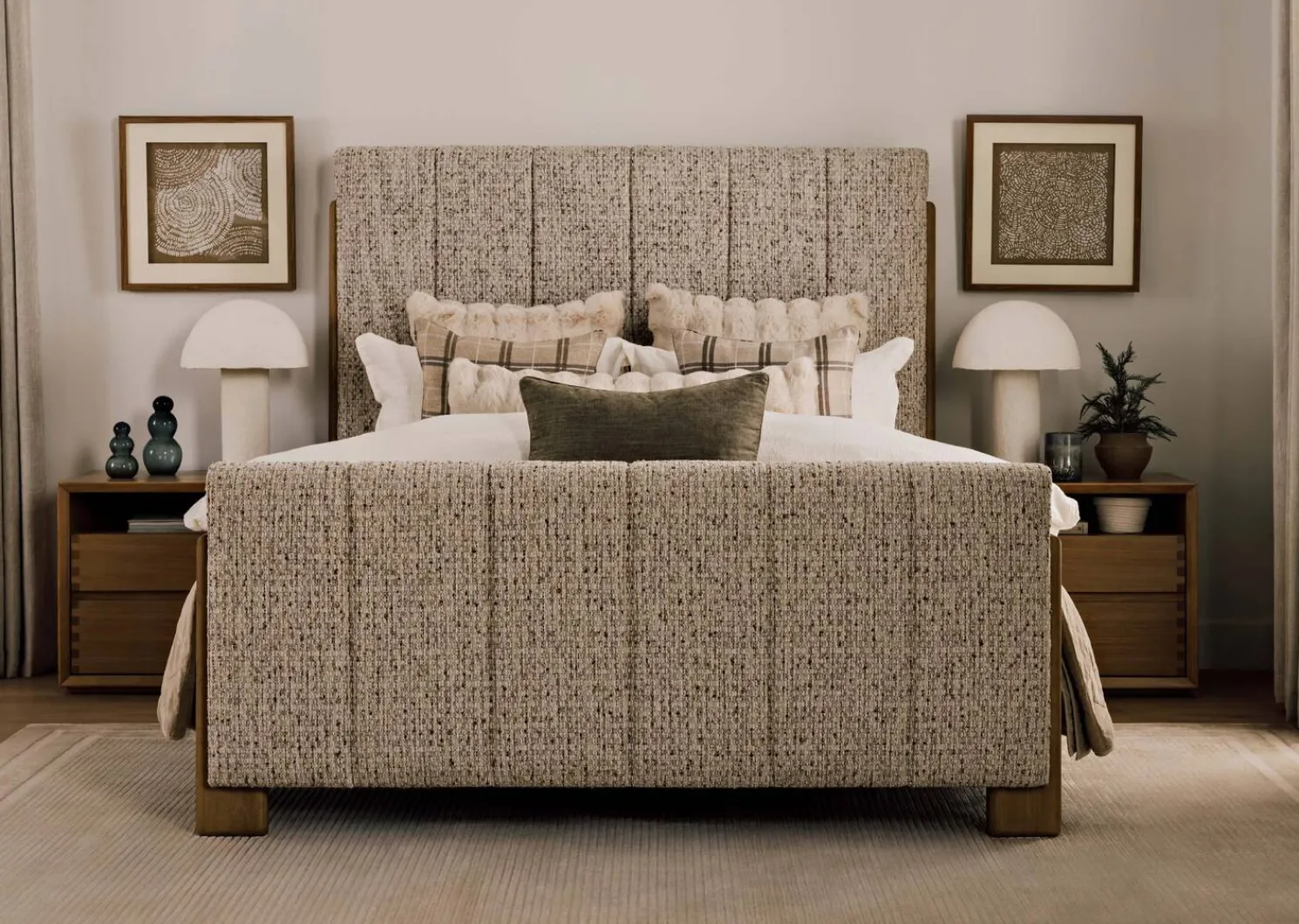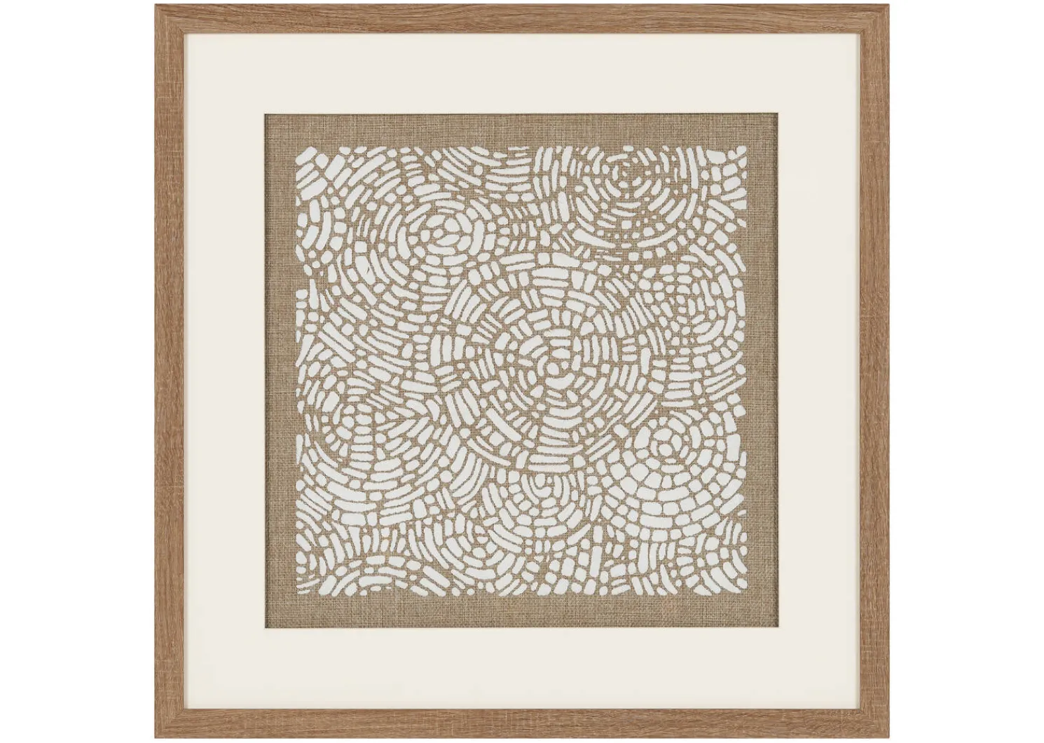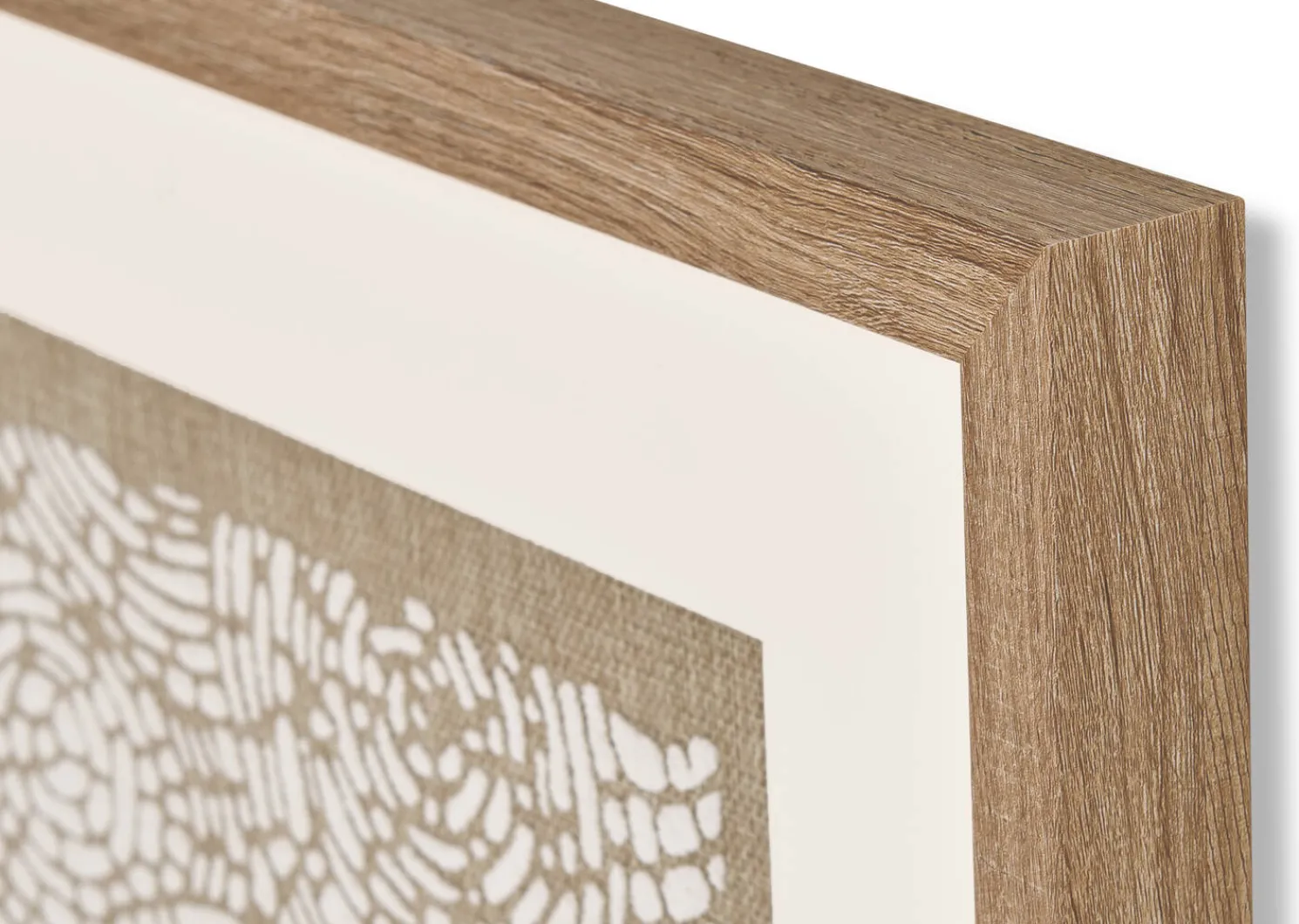 - Plastic frame, engineered wood, linen and glass