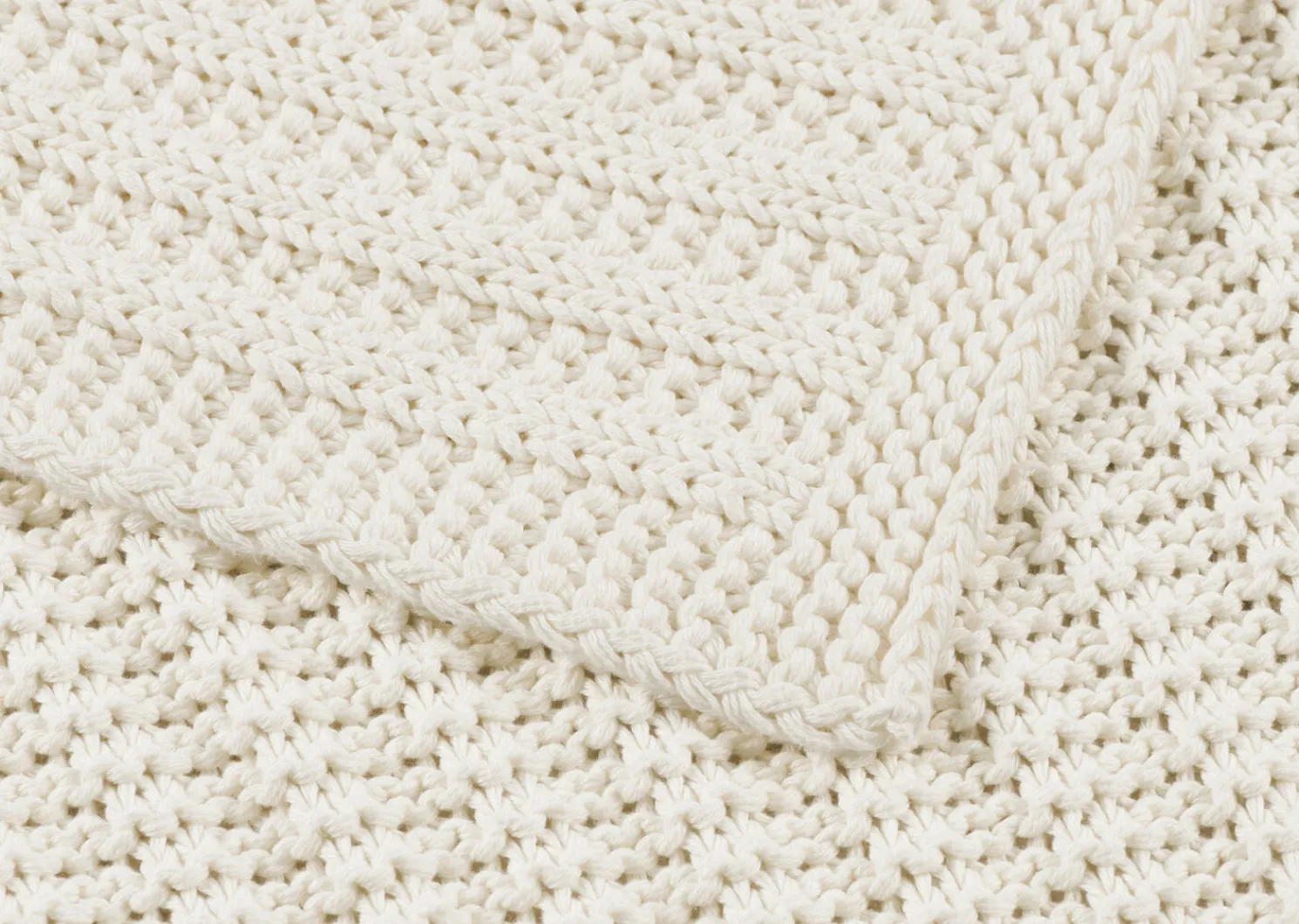 - Cotton flat knit throw in ivory