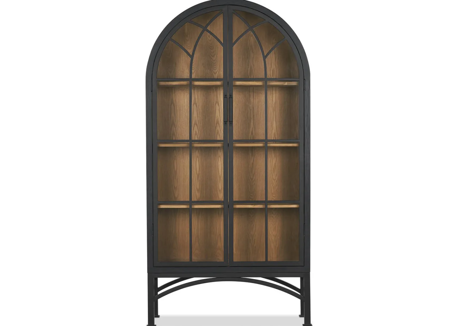 - Contrasting light wood interior allows for items inside to be well-showcased