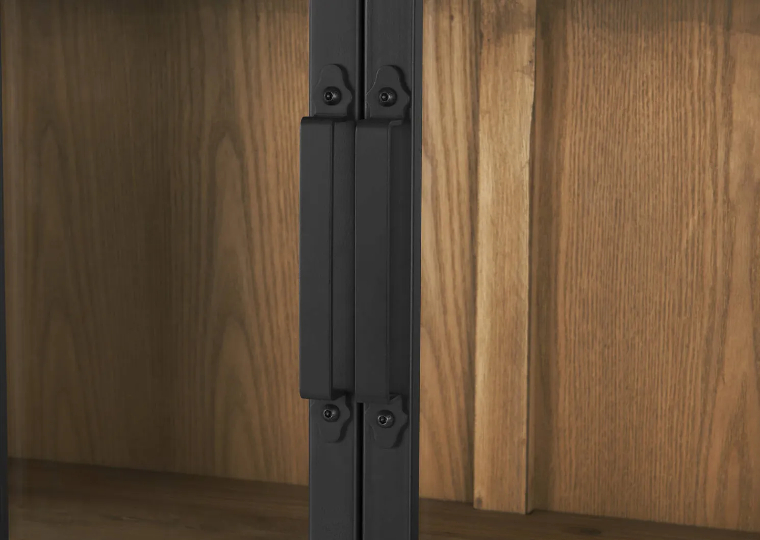 - The iron base and doors are welded by hand with visible welding marks that highlight its craftsmanship