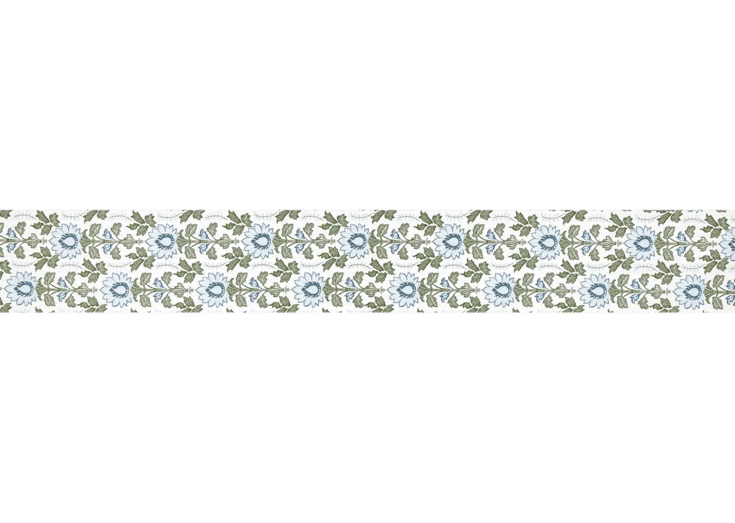 - Fused table runner in ivory color with floral print in light blue and green