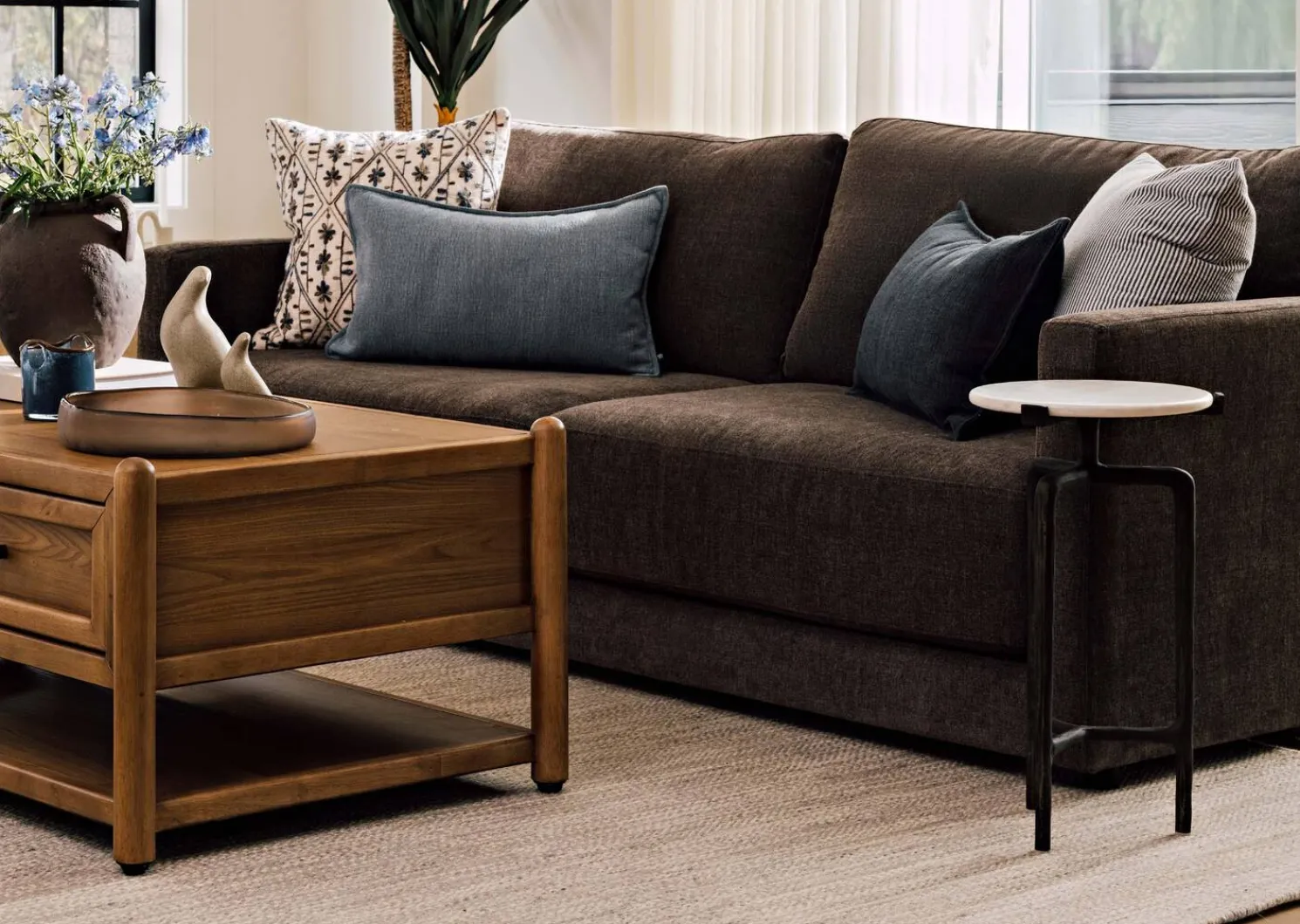 - Recycled aluminum frame and marble top