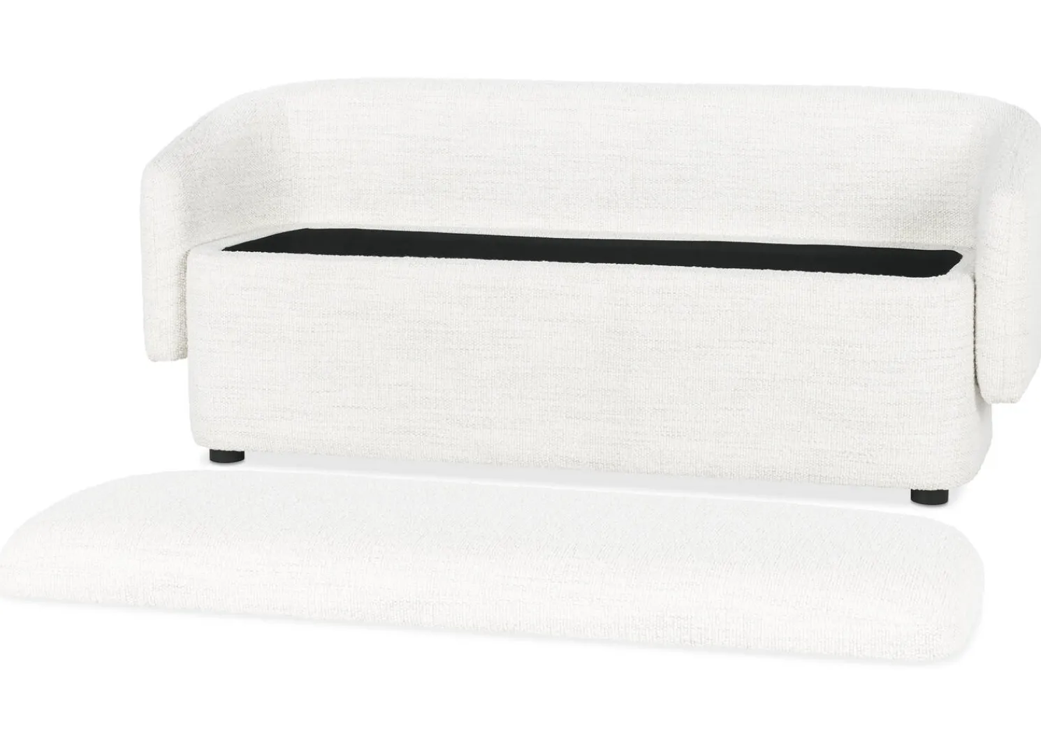- A removable seat reveals storage beneath
