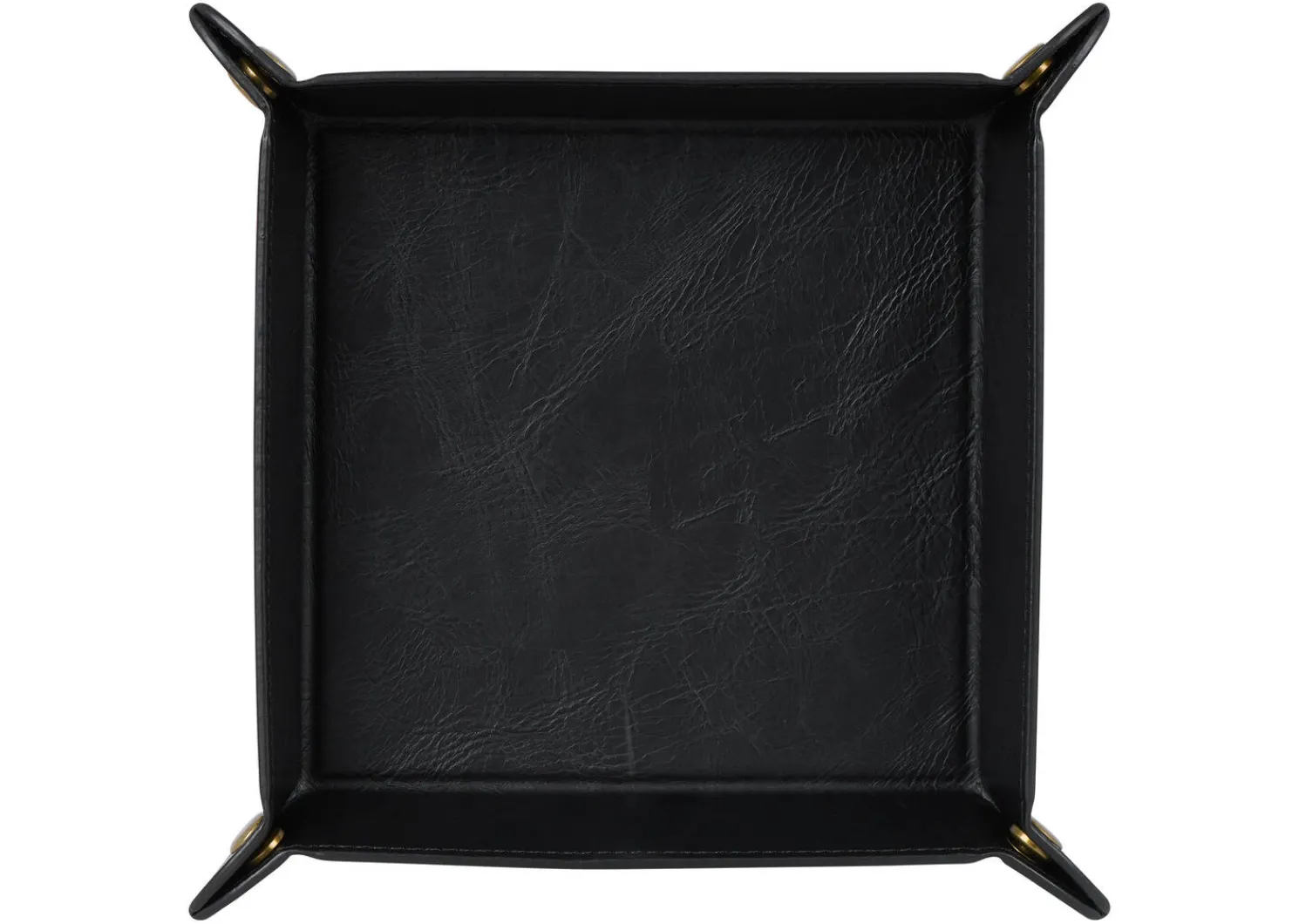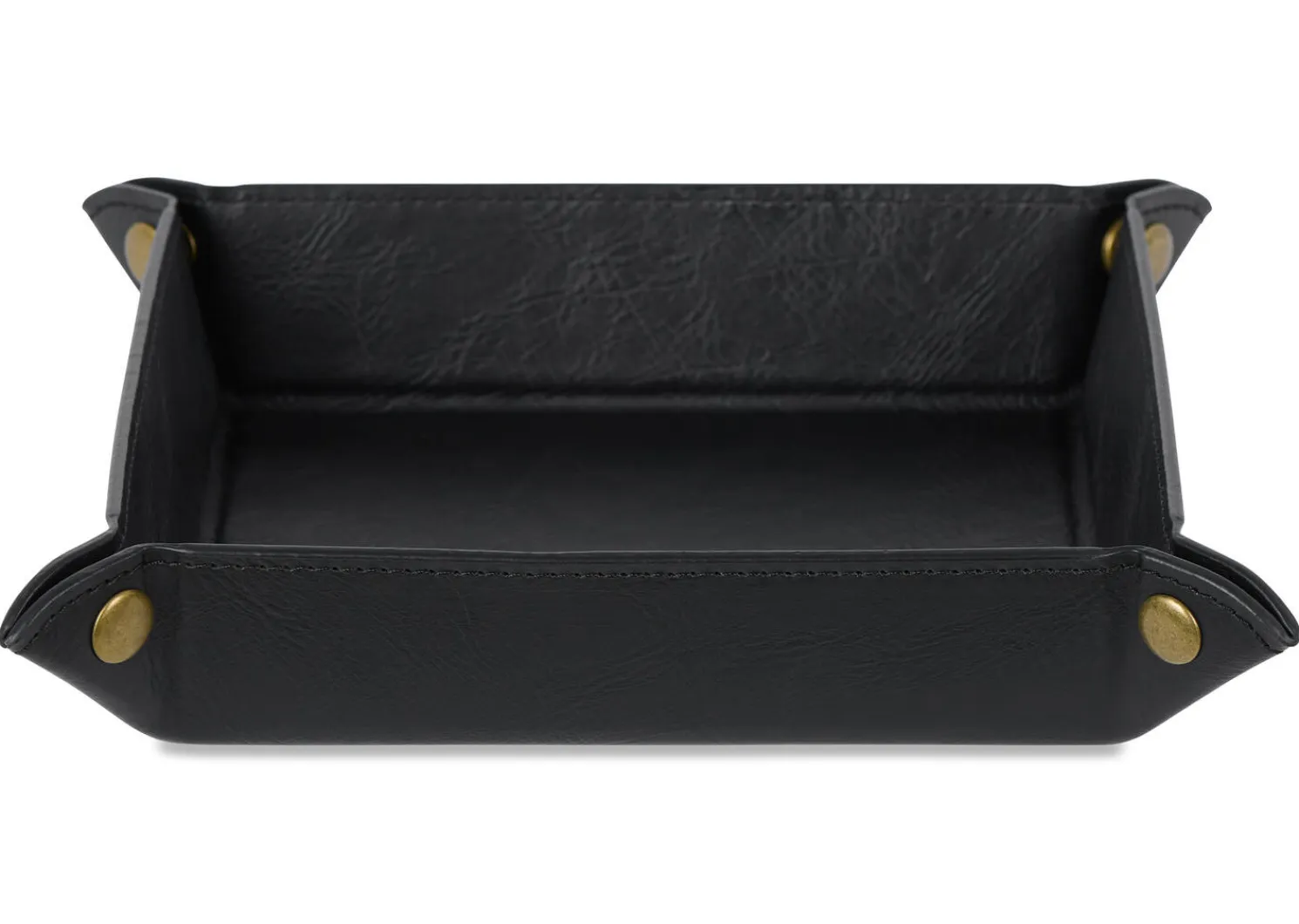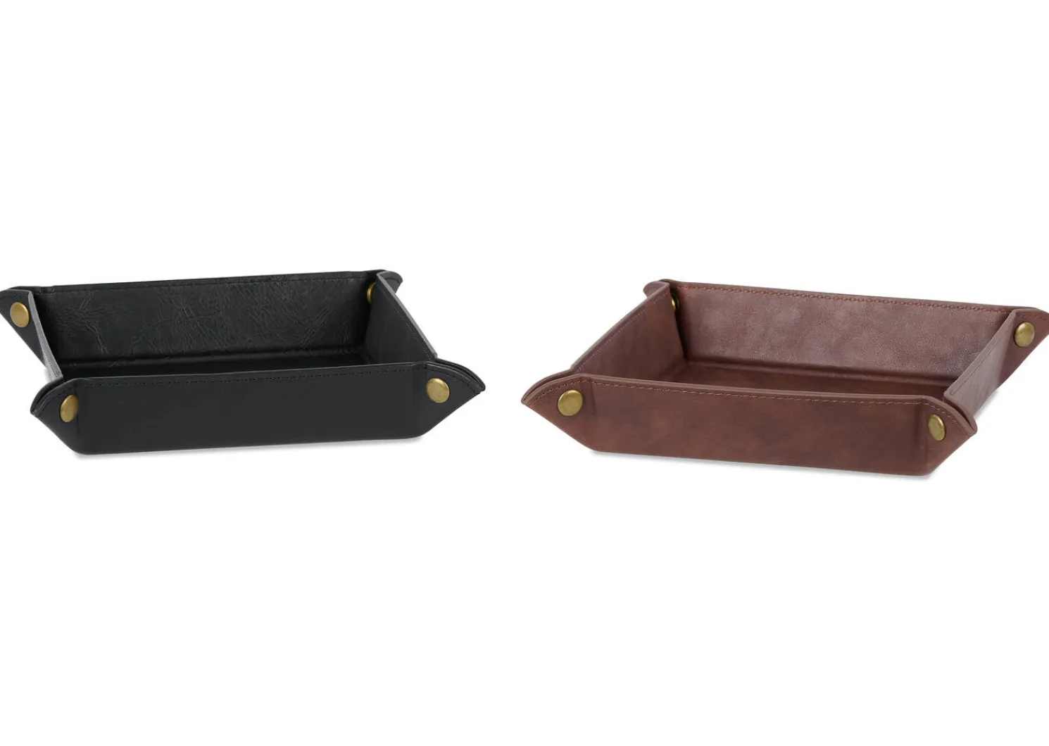- Faux leather tray with matching faux suede on the underside and snap buttons on all corners
