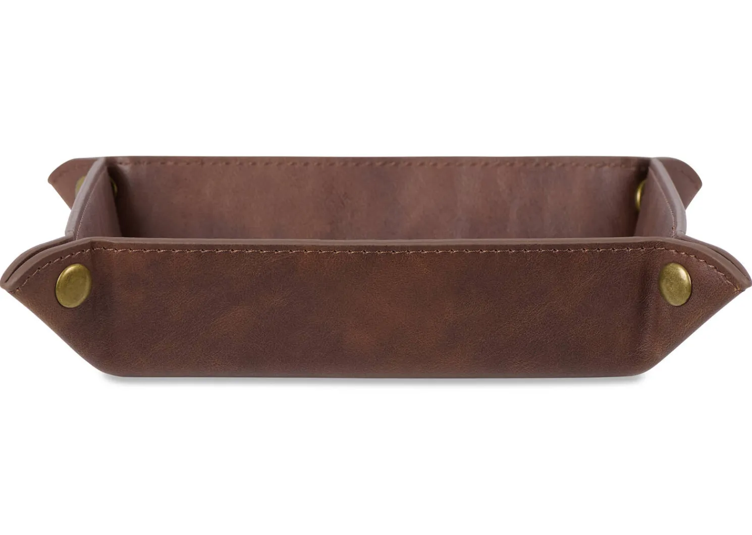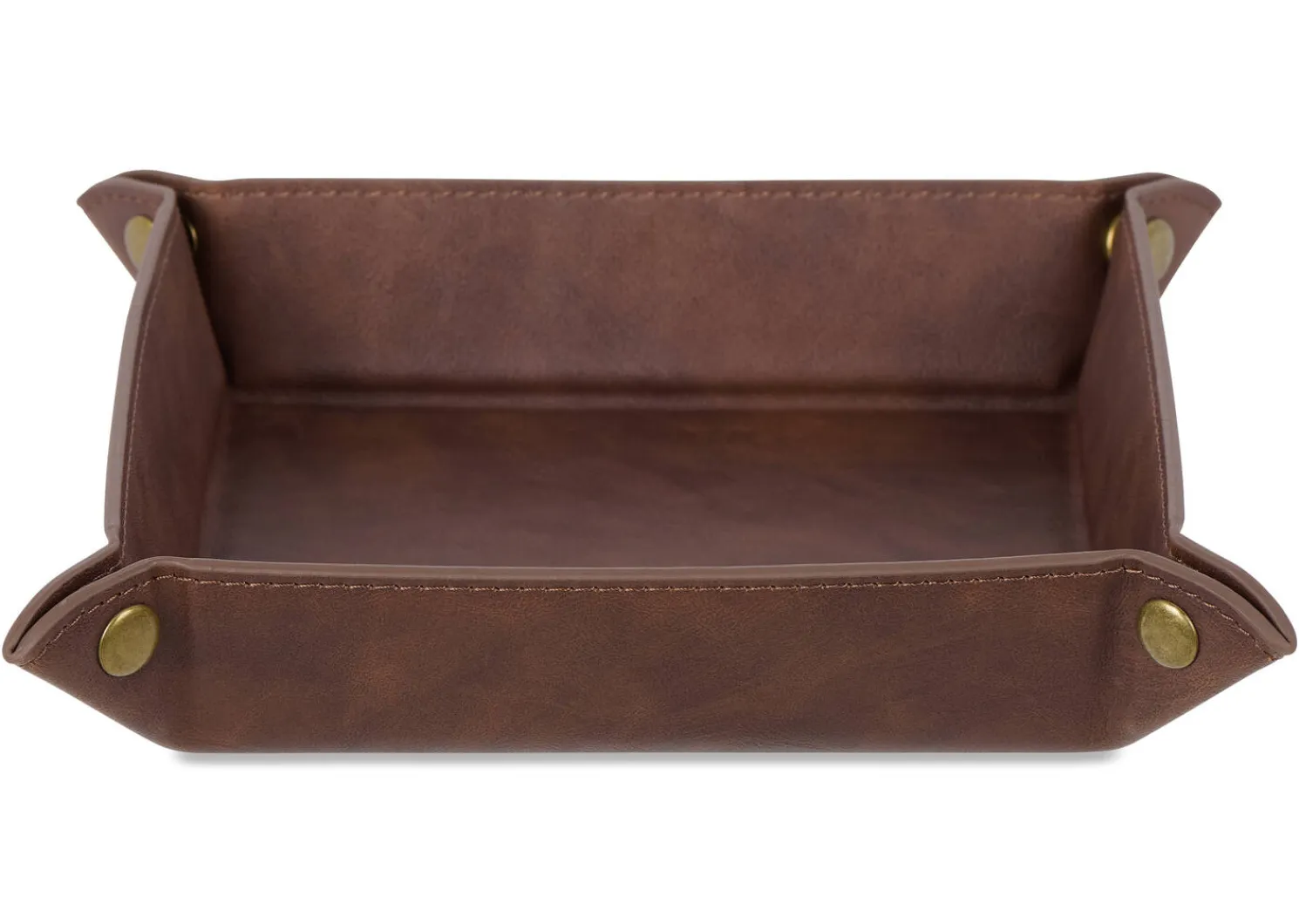 - Faux leather tray with matching faux suede on the underside and snap buttons on all corners