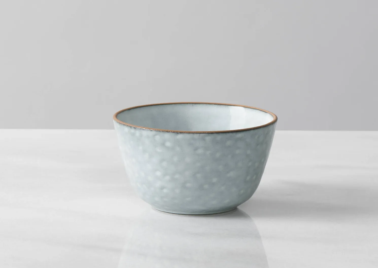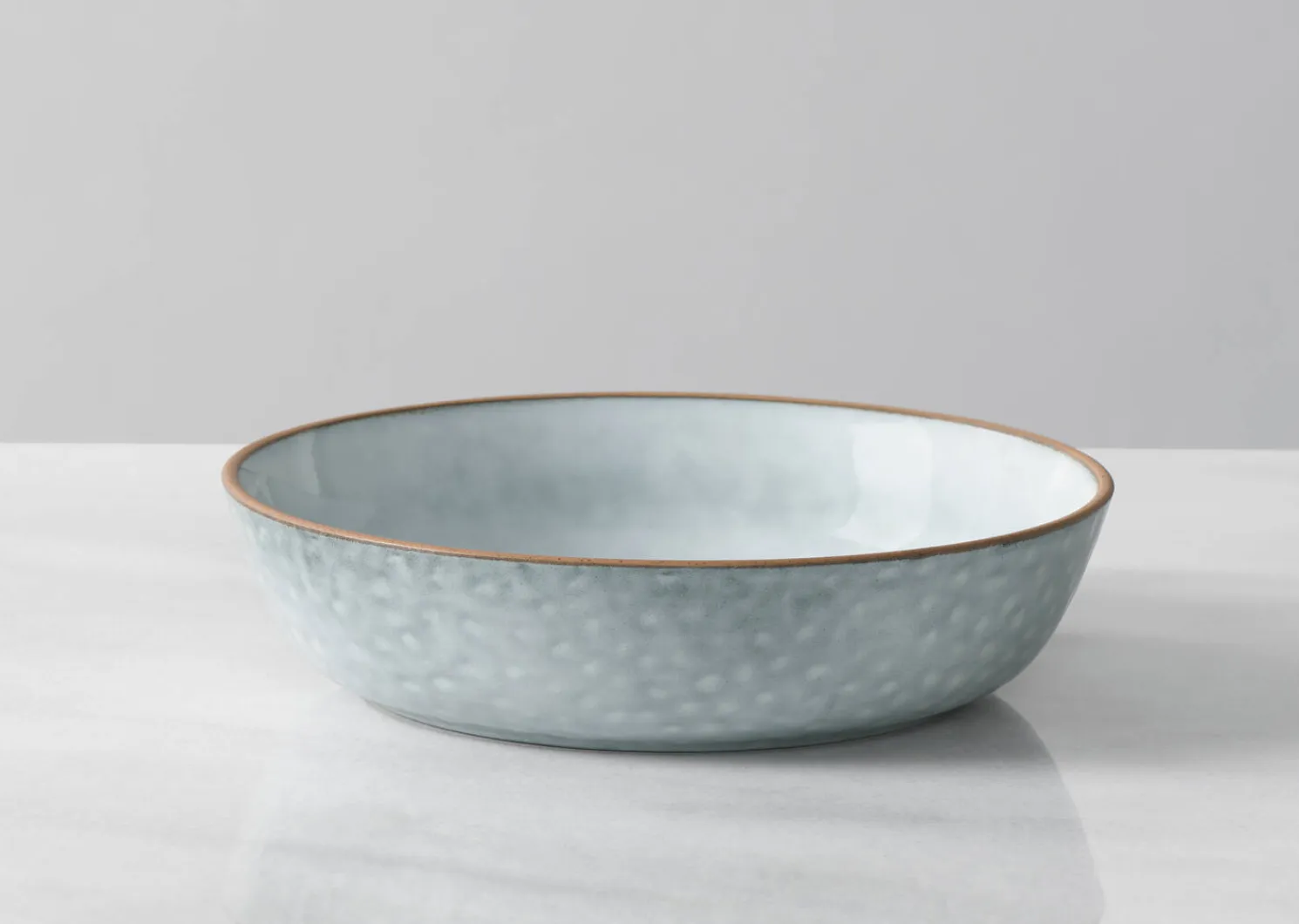 - Reactive glaze with high-gloss spray in light blue with caramel trim