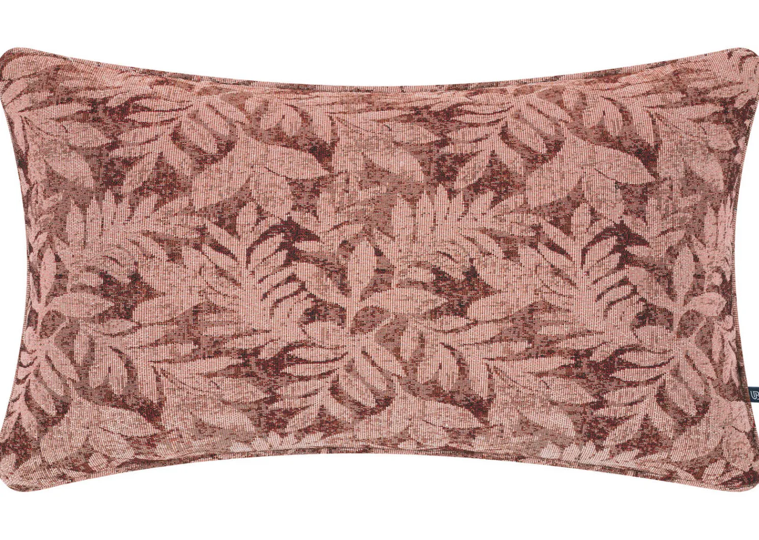 - Cotton blend pillow with self leaf pattern in bordeaux.