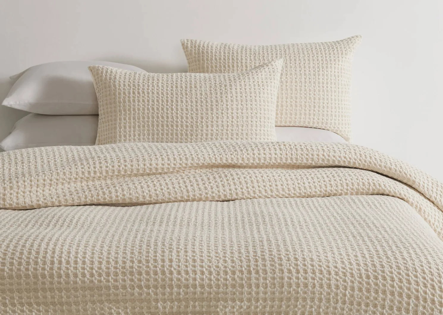 - Yarn dyed cotton with waffle texture in oyster colour