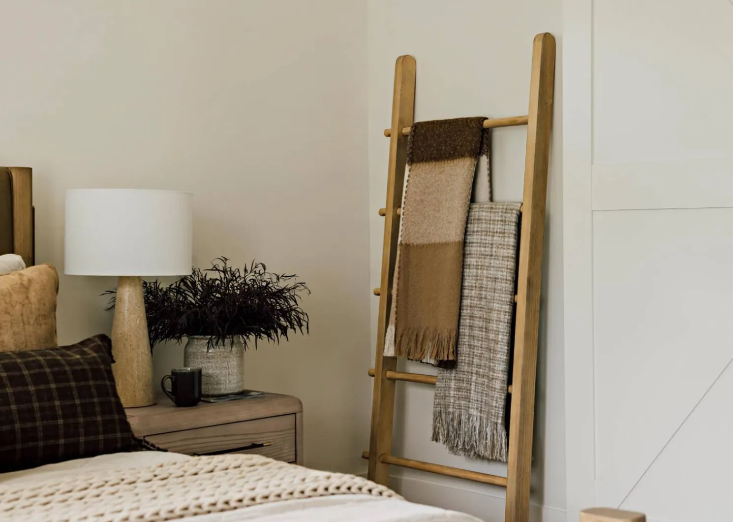- Soft mohair knotted patchwork throw in ivory, caramel and brown
