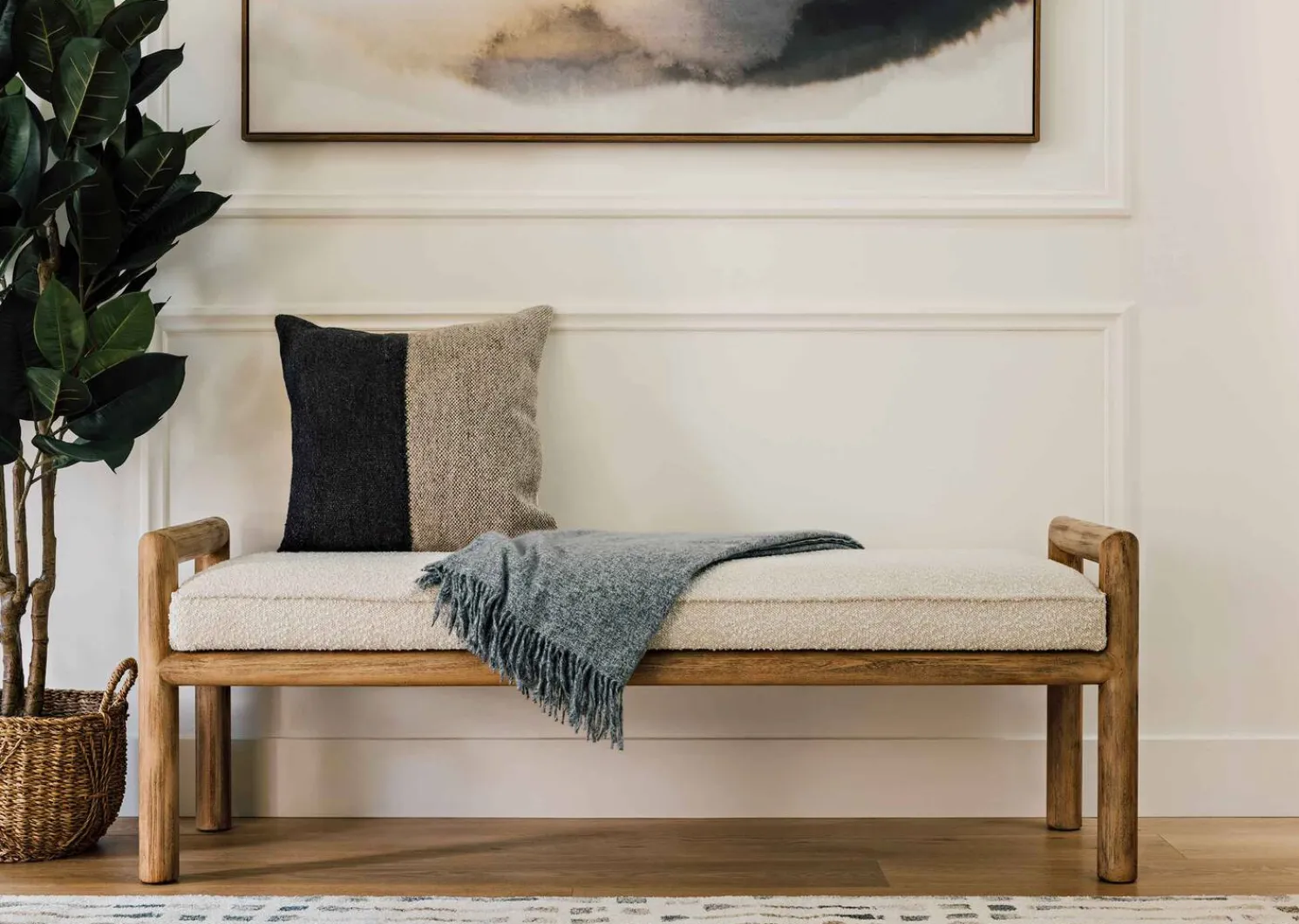 - A cream plush boucle cushion is made practical with a Performance treatment, safeguarding it against most spills and stains