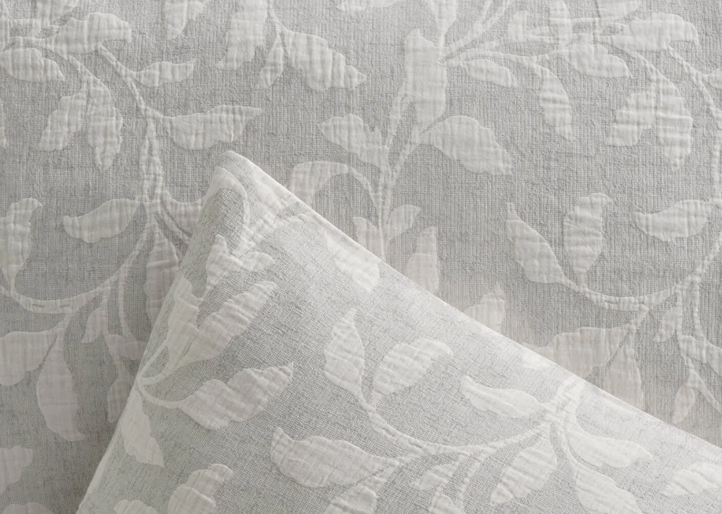 - Cotton jacquard duvet in light grey with ivory leaf pattern