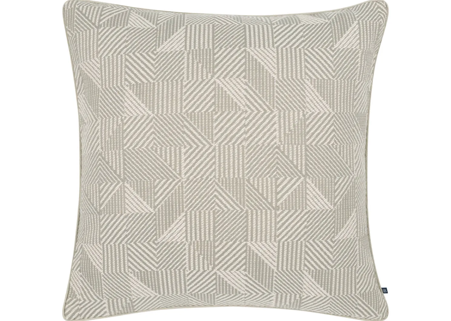 - Geometric design pillow in ivory and sage with matching sage piping