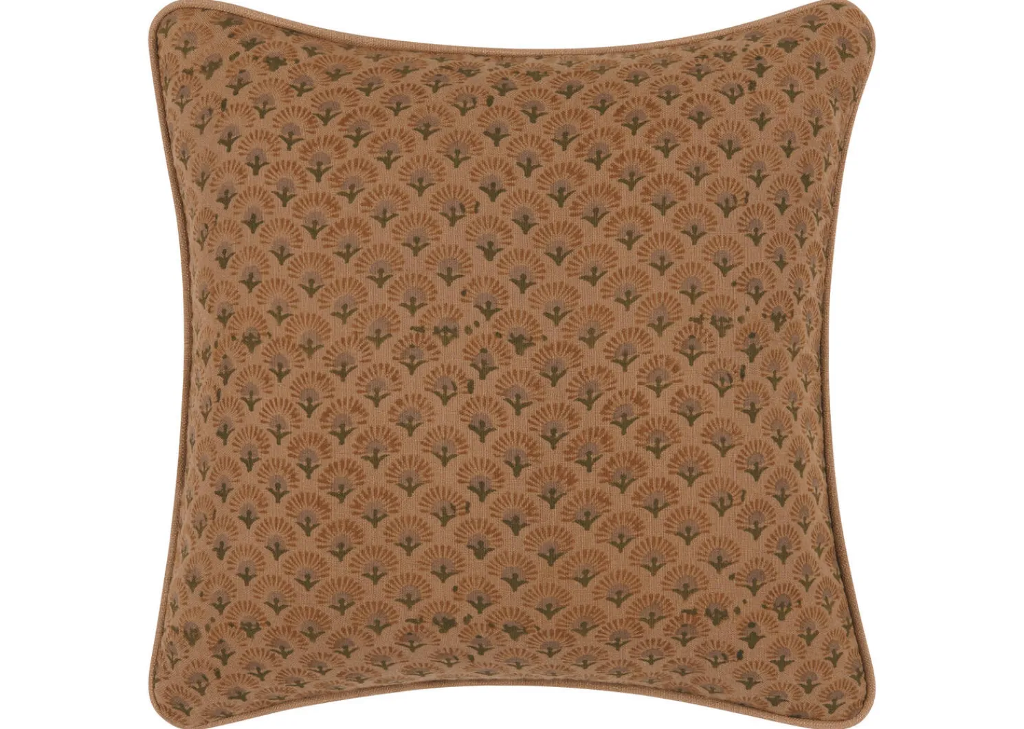 - Printed cotton pillow in rust with matching piping
