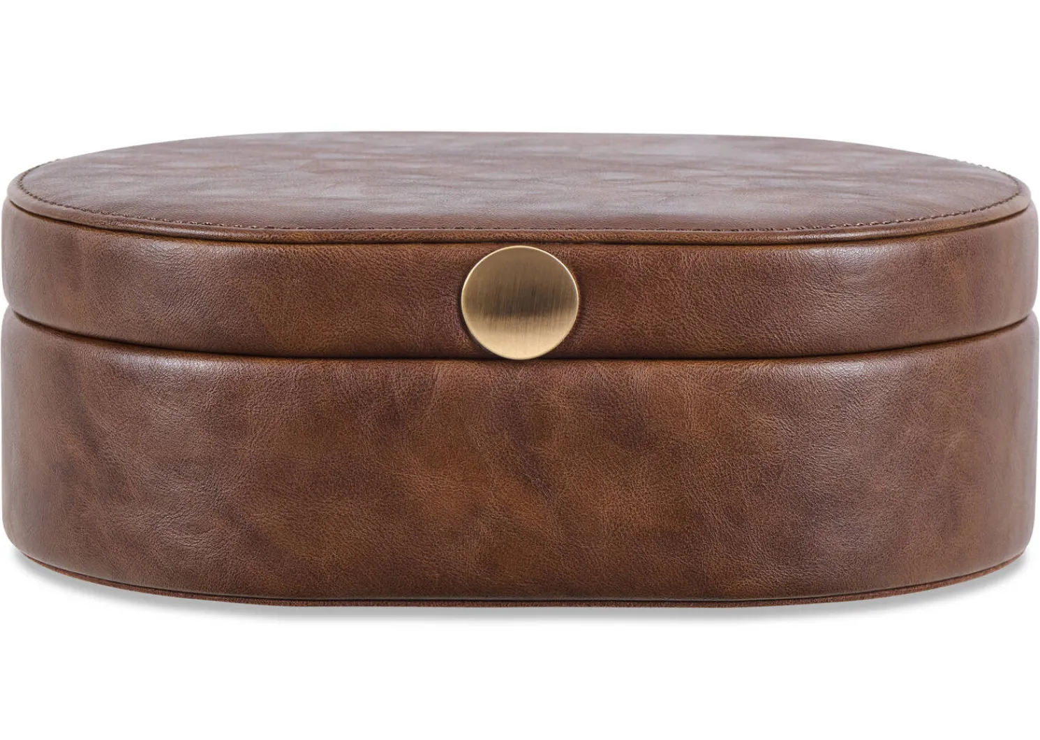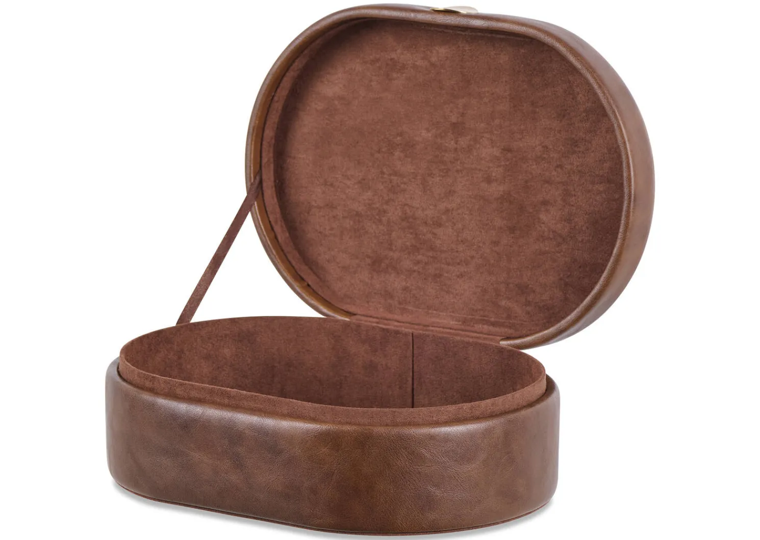 - Oval faux leather storage box lined with matching faux suede