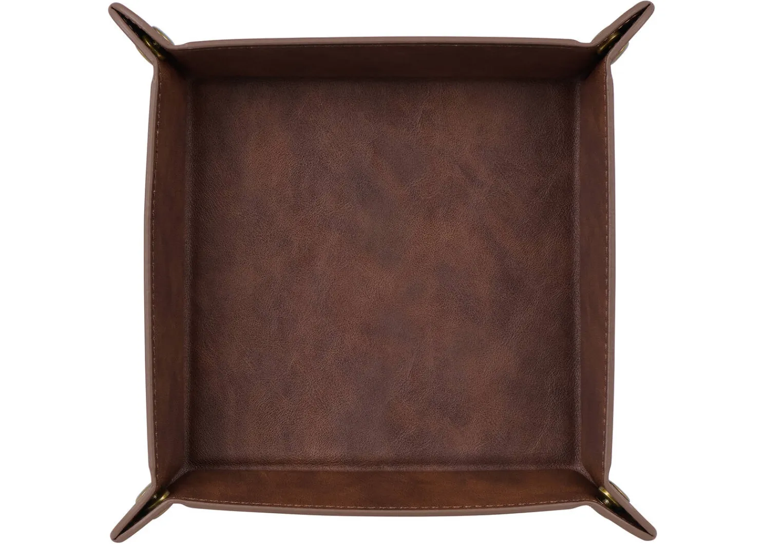 - Faux leather tray with matching faux suede on the underside and snap buttons on all corners